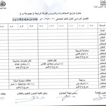 Lecture distribution schedule for the fourth group Group B