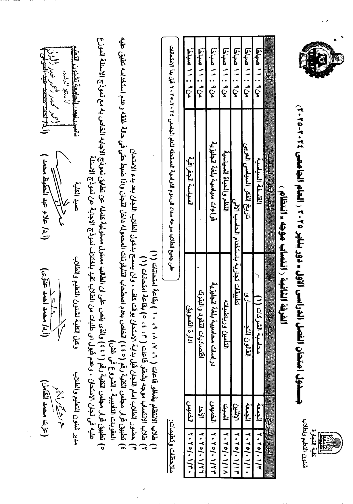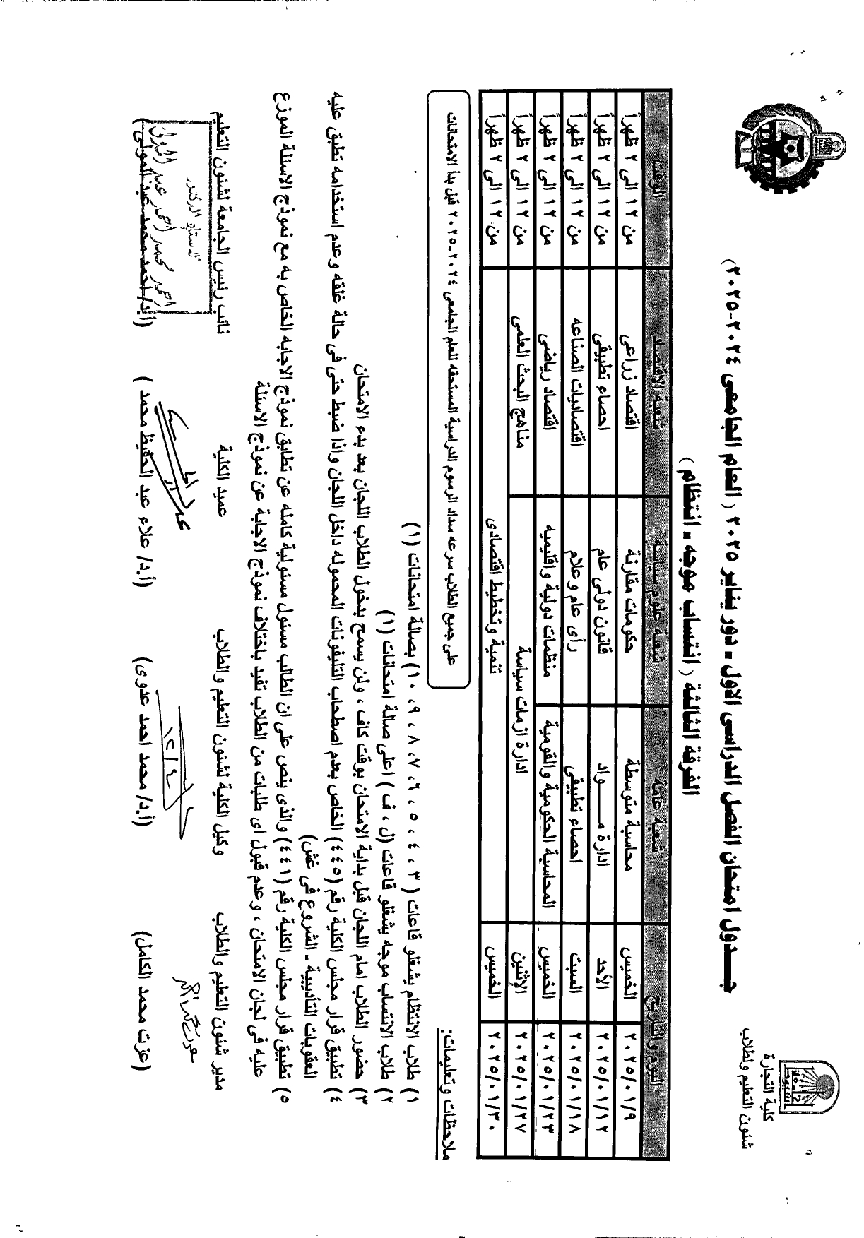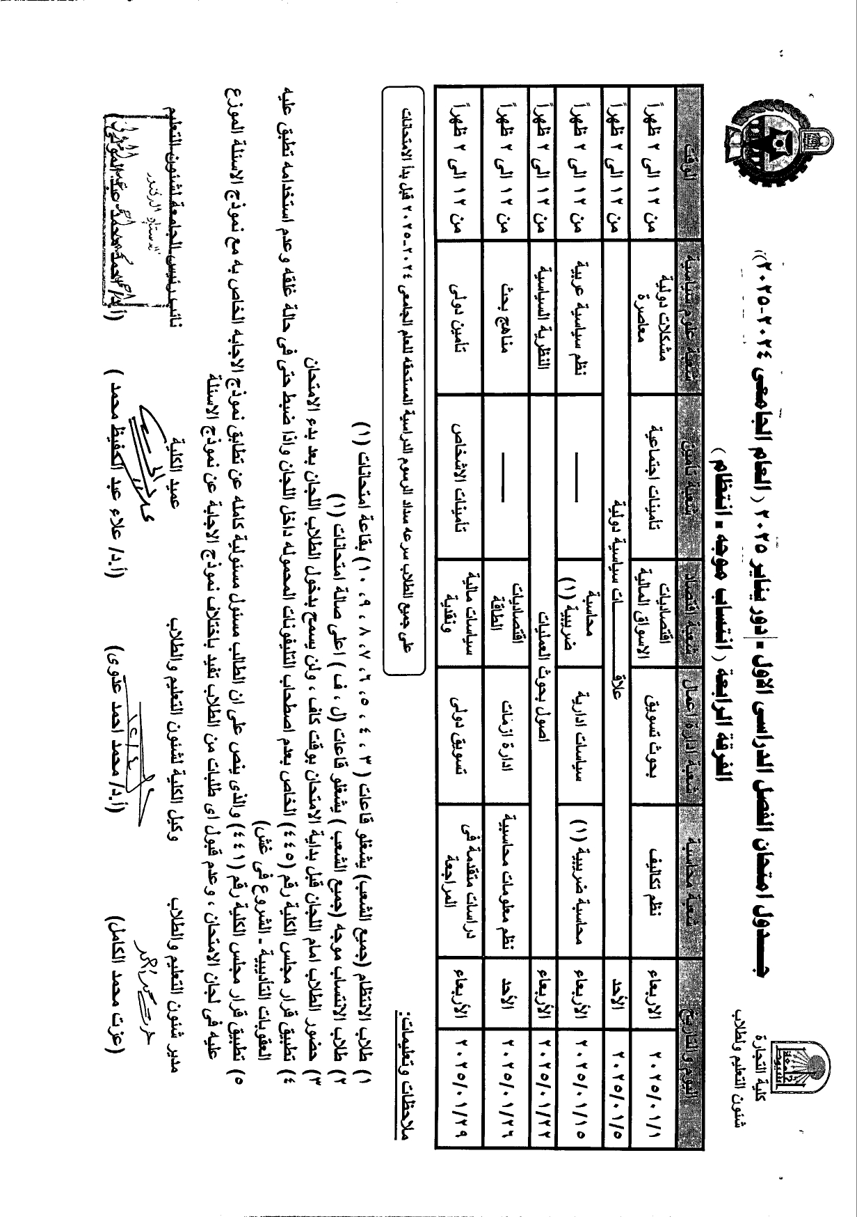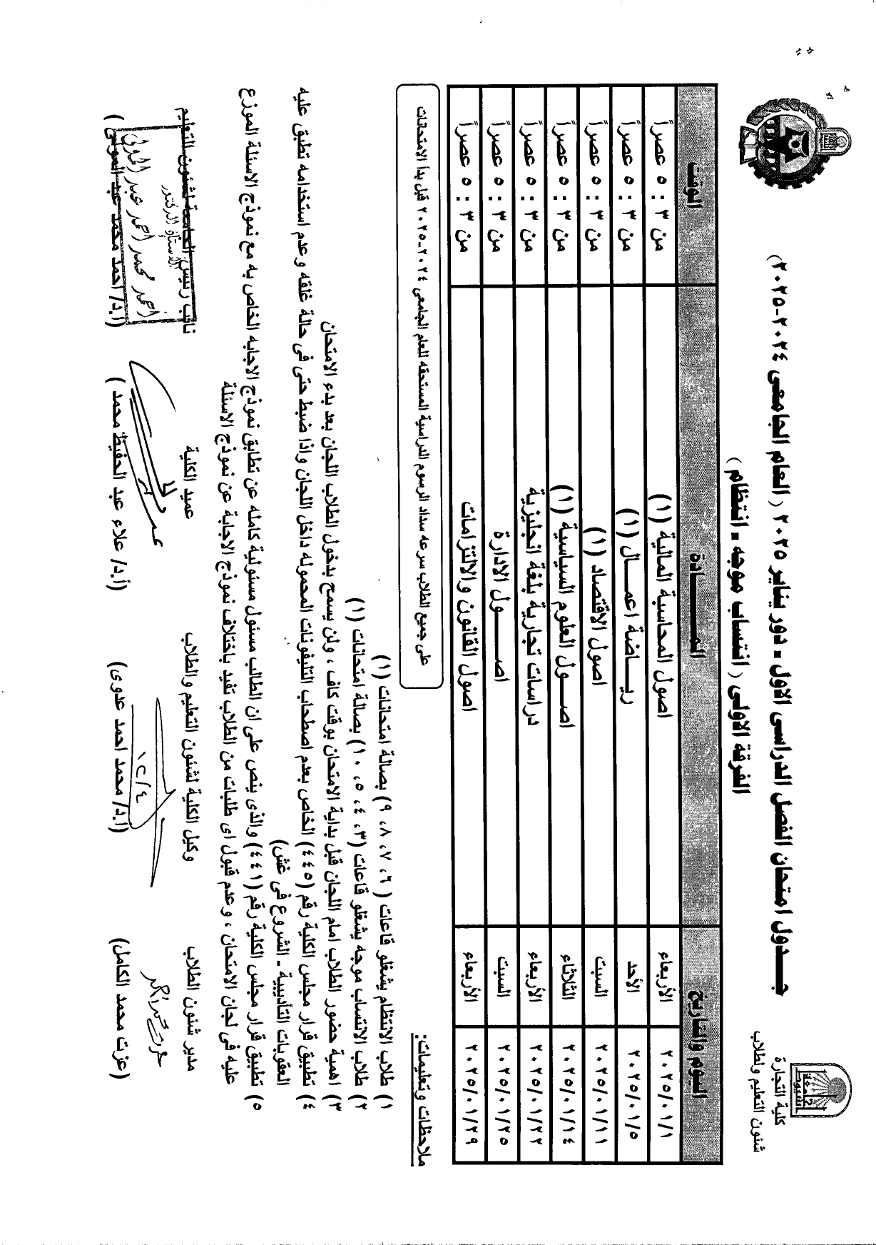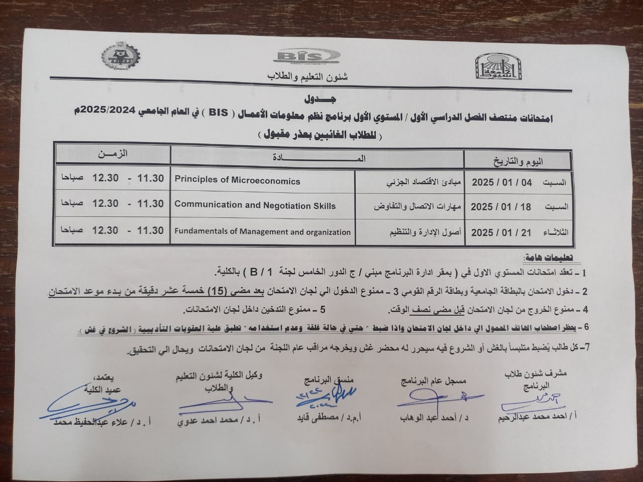 First semester exam schedule for 2024/2025, first level of BIS program For students absent with an acceptable excuse