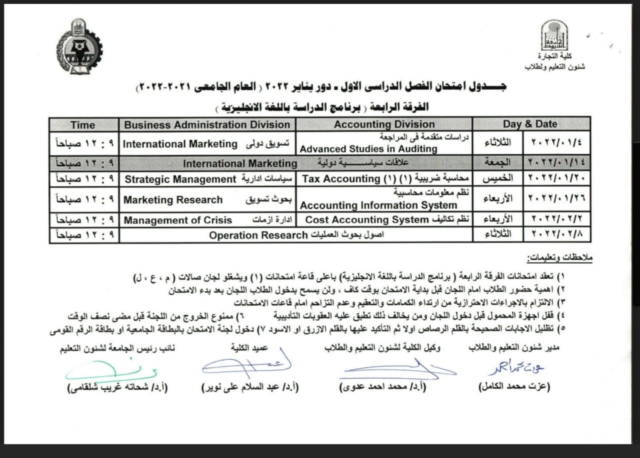 Schedule of first semester exams for the academic year 2022/2021 4th Division language 28 December 2021