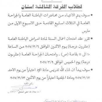 Announcement for third year students
