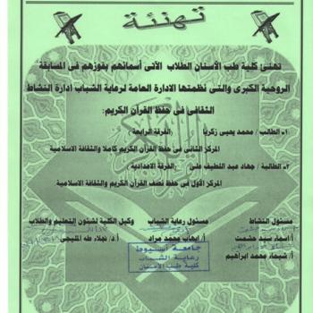 تهنئ إدارة رعاية الشباب كلية طب الأسنان فوز طلابها بالمستويات الأولى على مستوى الكليات فى مسابقة القرآن الكريم ونصف القرآن الكريم إدارة الكلية