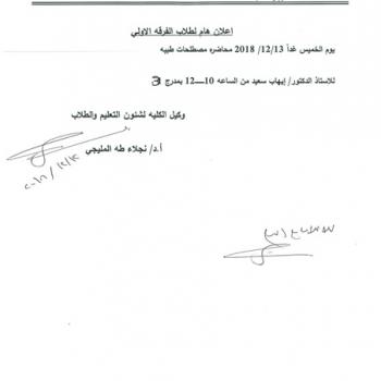 Announcement for first year students