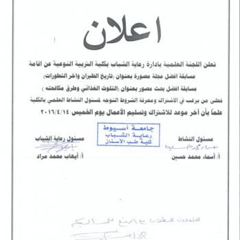 اعلان عن فتح باب الترشيحات فى المسابقة العلمية