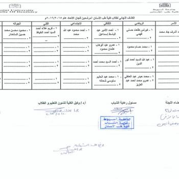 الكشف النهائى للمرشحين للجان اتحاد الطلاب