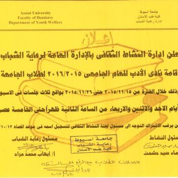 اقامة نادى الادب للعام الجامعى 2015-2016
