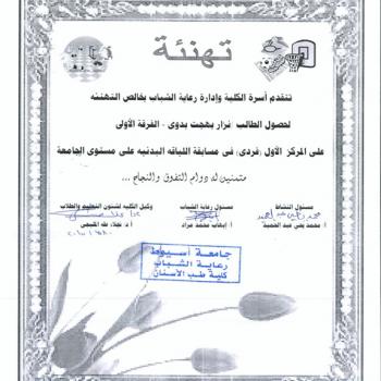 تهنئة للطالب نزار بهجت بالفرقة الاولى