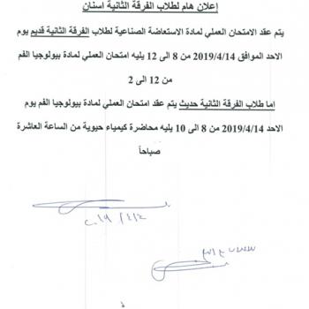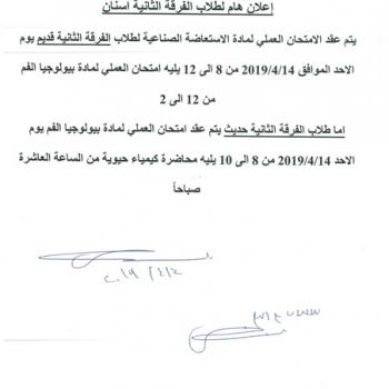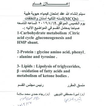 اعلان هام عن موعد امتحان الكيماء الحيوية