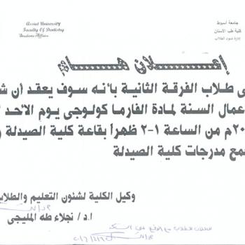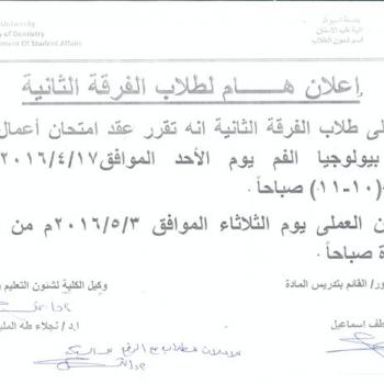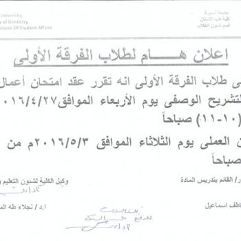 اعلان هام لطلاب الفرقه الاولى بخصوص امتحان ماده التشريح