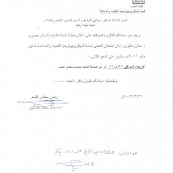 (اجراء الامتحان النهائى)اعلان عام لطلاب الفرقه الثالثه