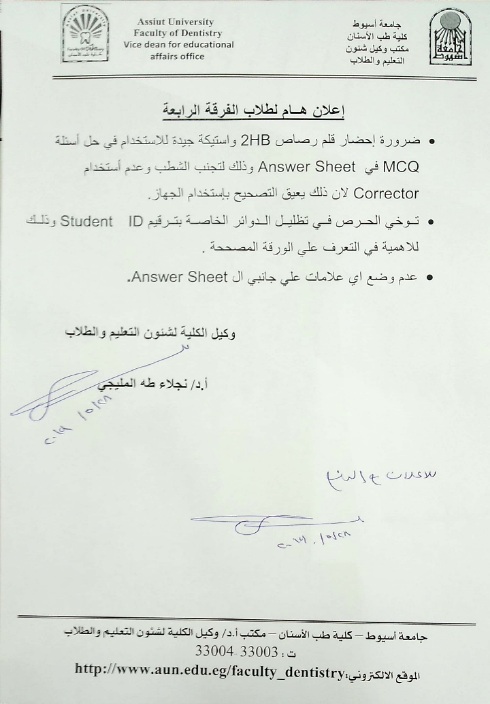 اعلان لطلاب الفرقة الخامسة .