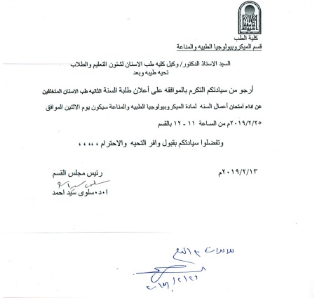 اعلان لطلاب الفرقة الخامسة .