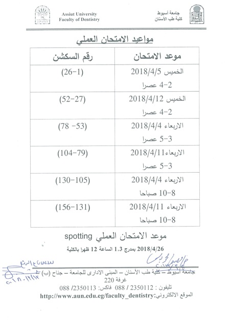 مواعيد الامتحان العملى