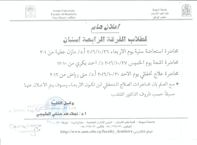 اعلان محاضرة الفرقة الرابعة