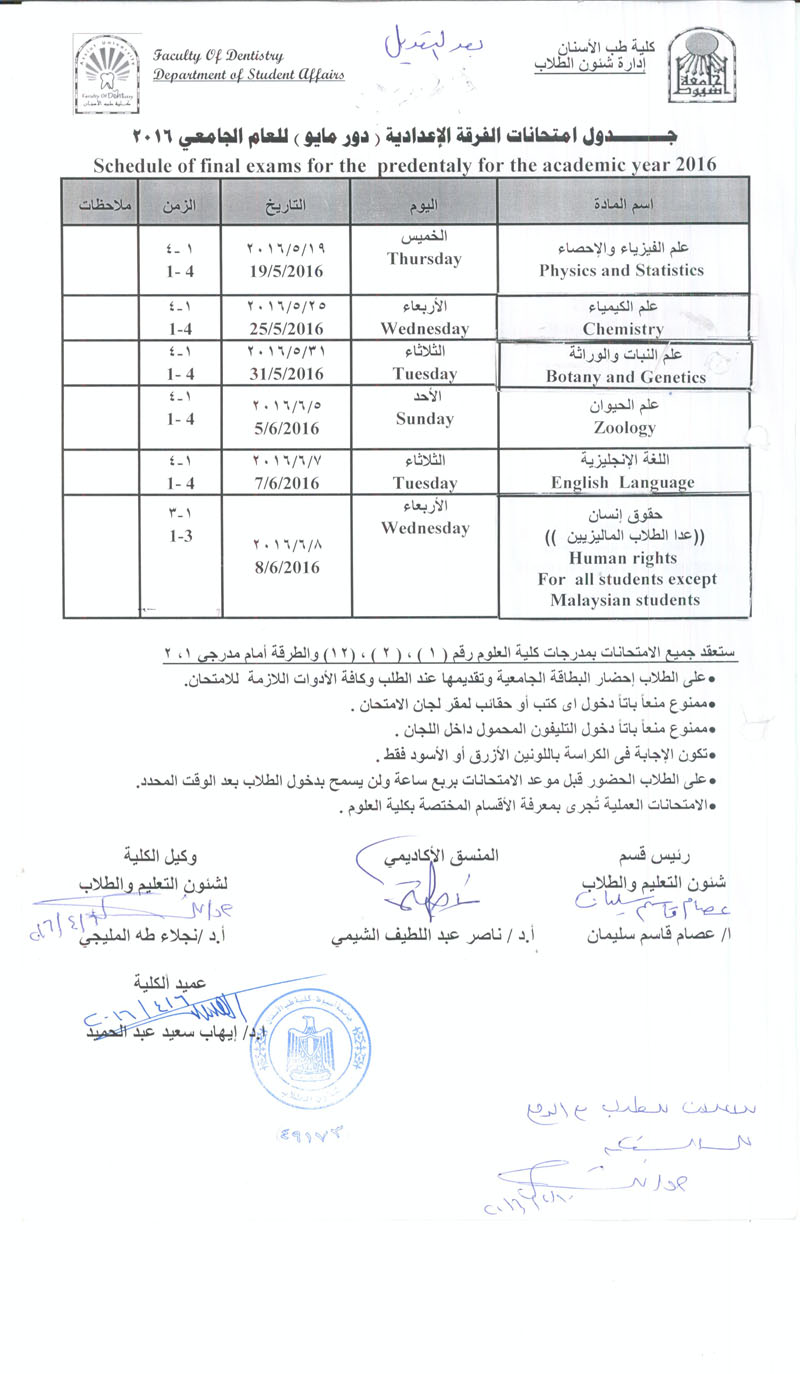بعد تعديل جدول امتحانات الفرقة الاعدادية دور مايو 2016 21 أبريل 2016 بعد تعديل جدول امتحانات الفرقة الاعدادية دور مايو 2016