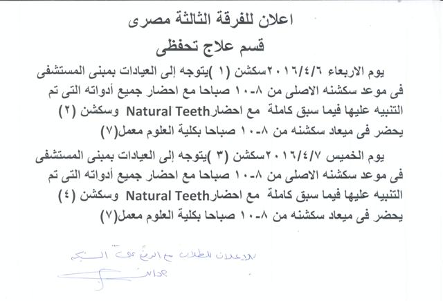 اعلان هام لطلاب الفرقة الاولى (حكومي ).