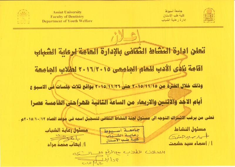 اقامة نادى الادب للعام الجامعى 2015-2016