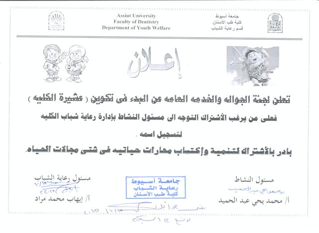 اعلان عن البدء فى تكوين عشيرة الكلية