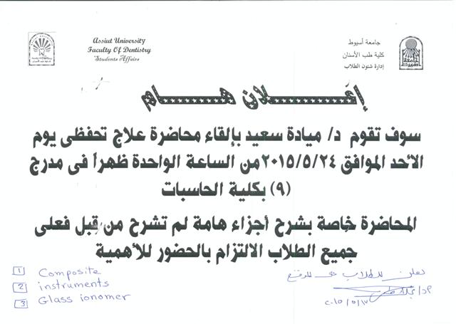 اعلان هام لطلاب الفرقة الاولى (حكومي ).