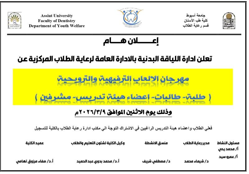 اعلان عن اقامة مهرجان الالعاب الترفيهية و الترويحية .