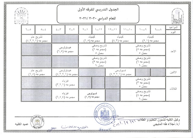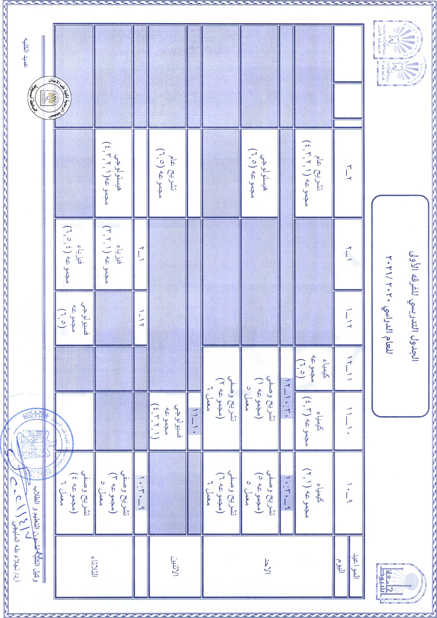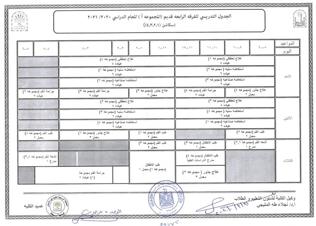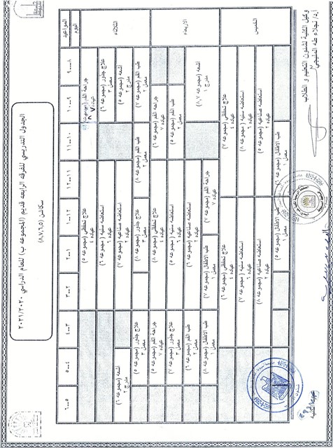 الجدول التدريسي للفرقة الرابعة قديم (مجموعه ب ) للعام الدراسي 2020/2021 سكاشن ( 5 ,6 ,7 ,8 )