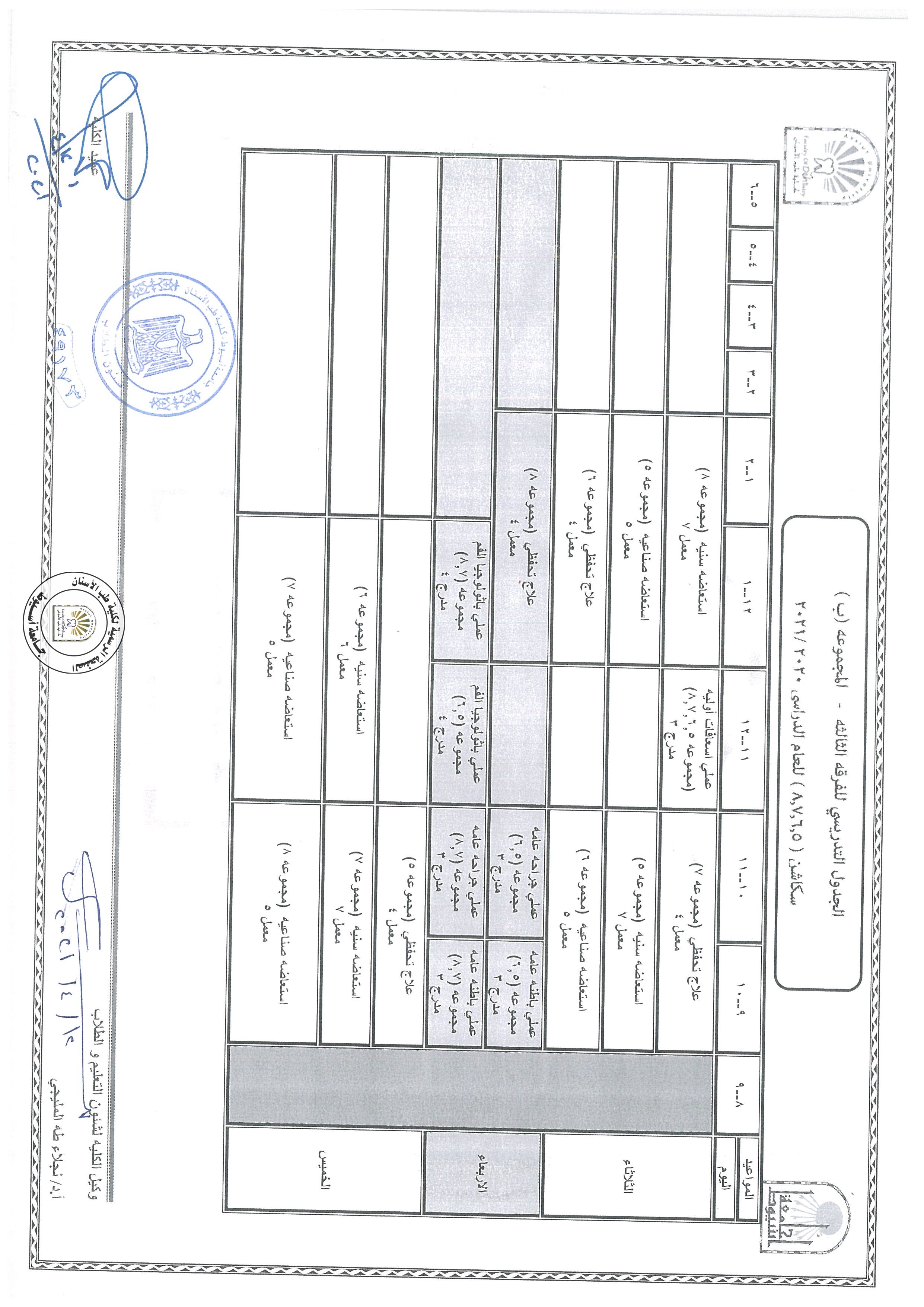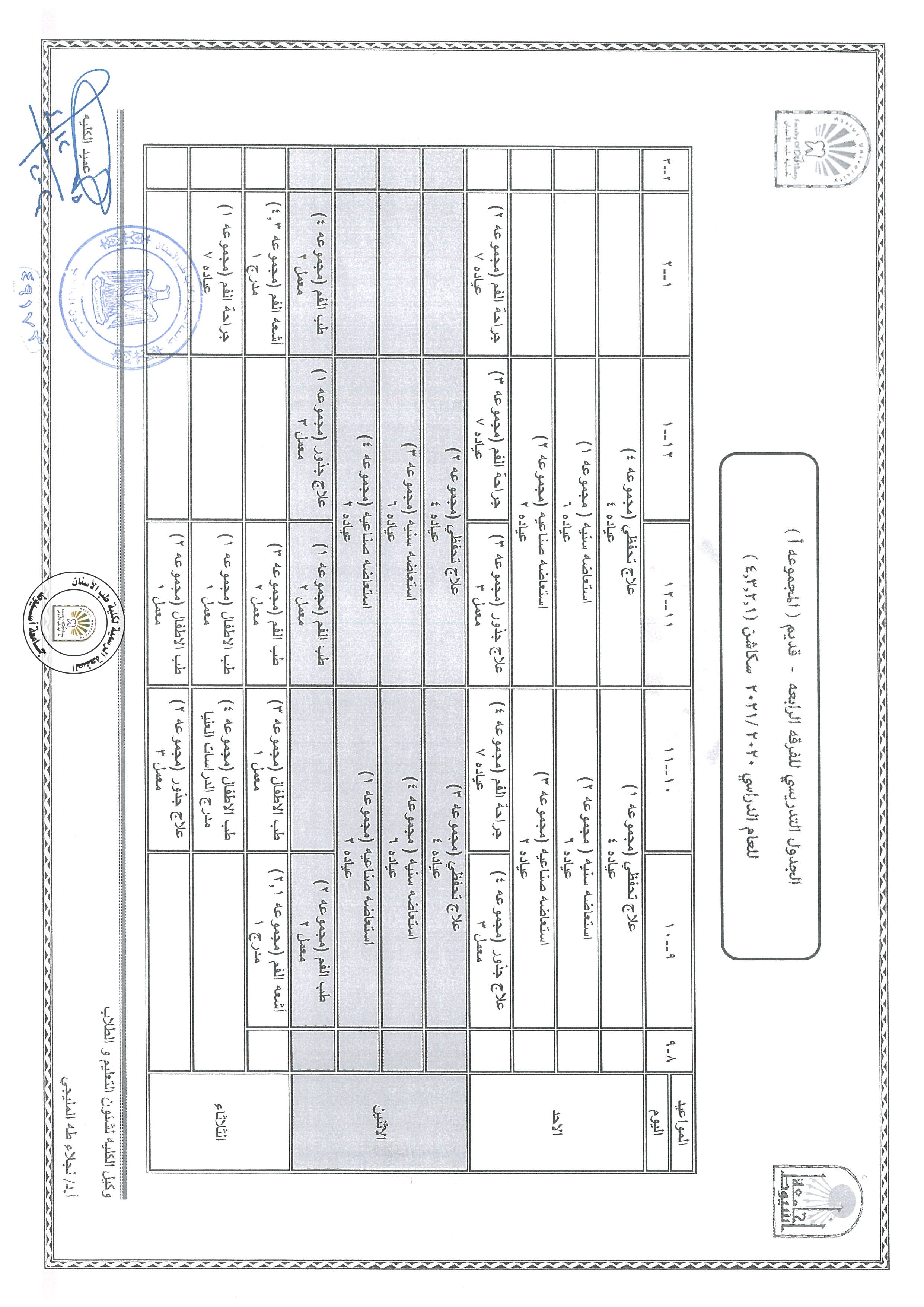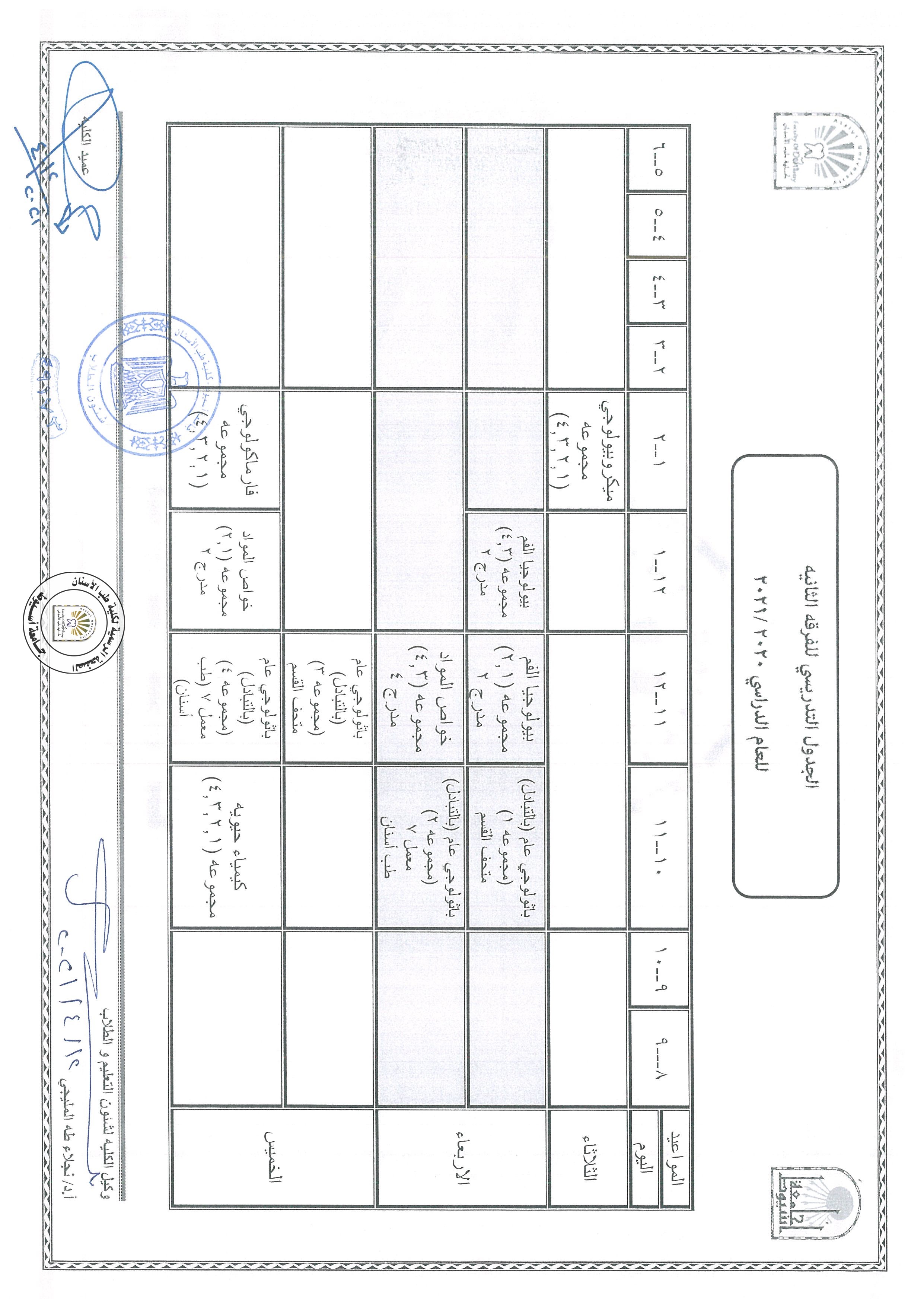 تعديل ...الجدول التدريسي للفرقة الثانية للعام الدراسي 2020/2021،طبقا لمواعيد شهر رمضان المبارك و يبدأ العمل به اعتبارا من يوم الثلاثاء 4/13 .