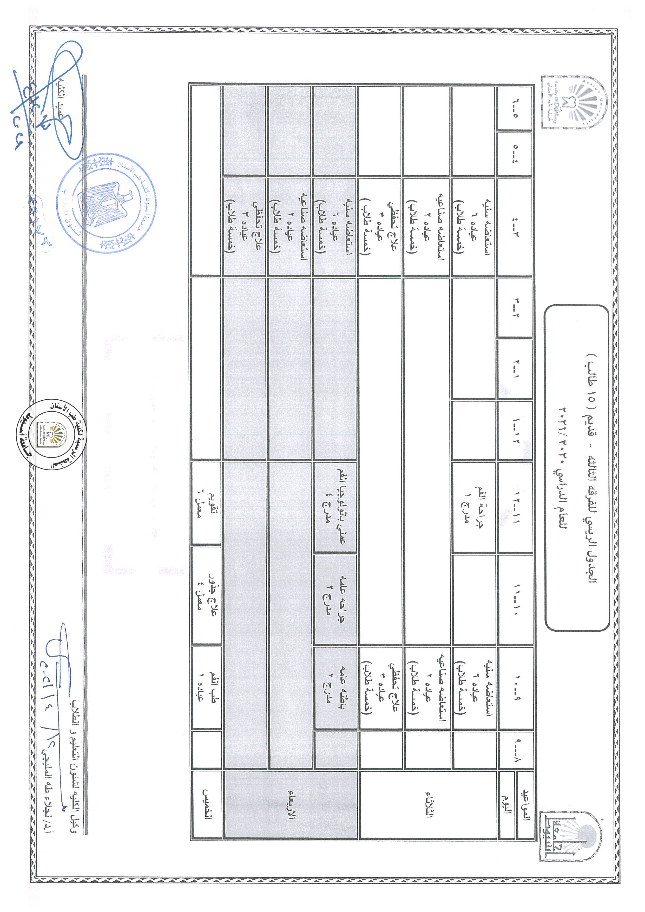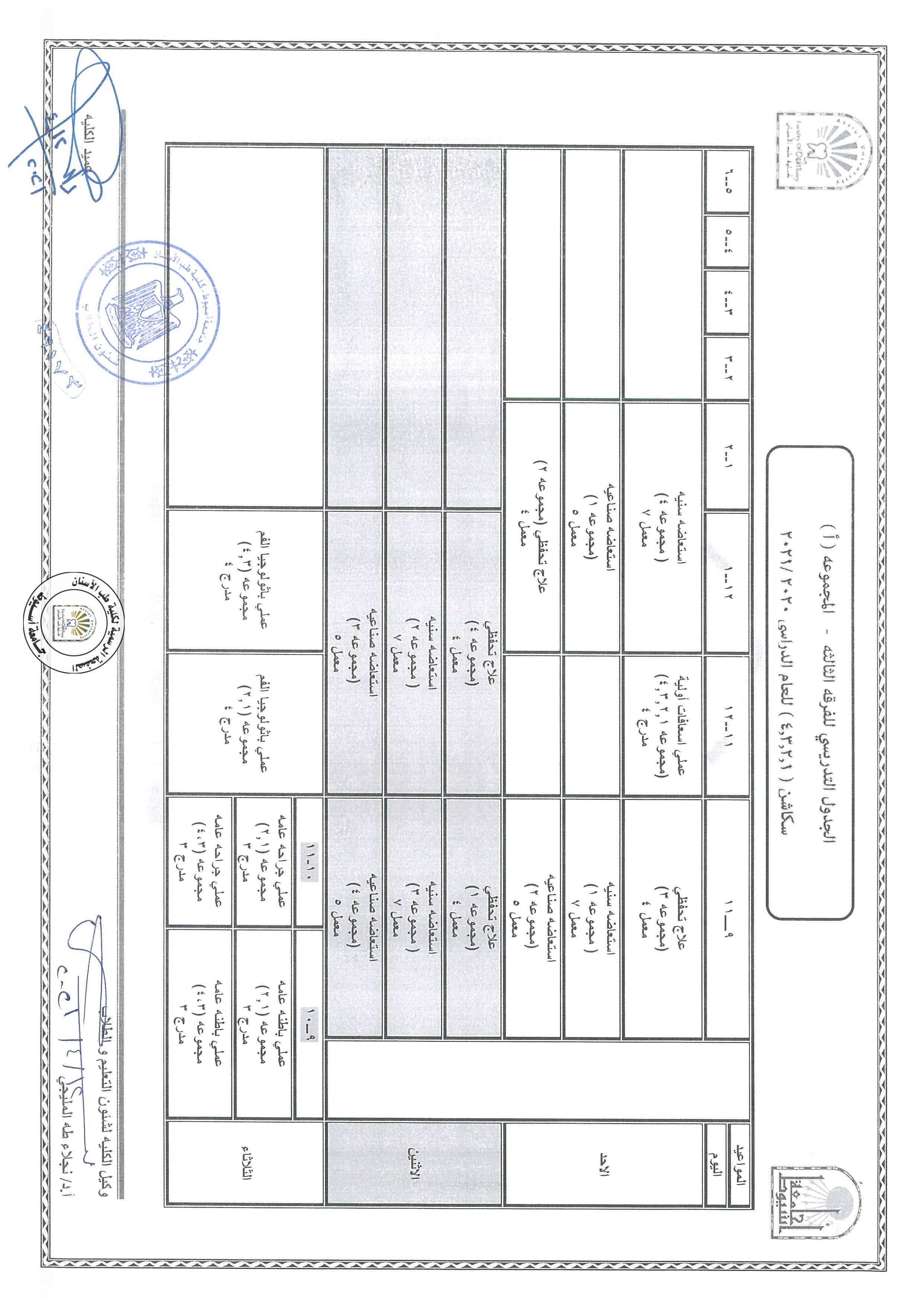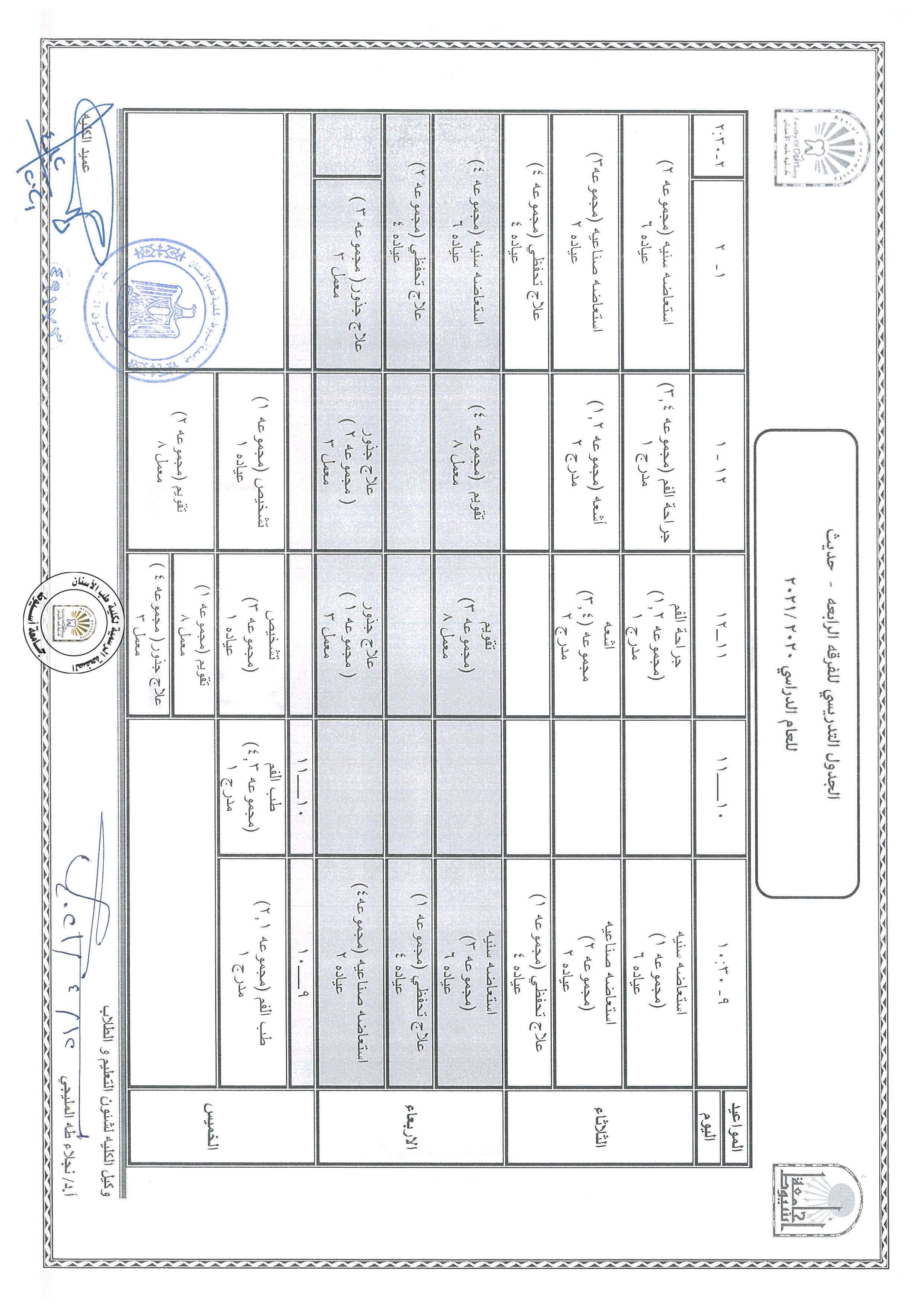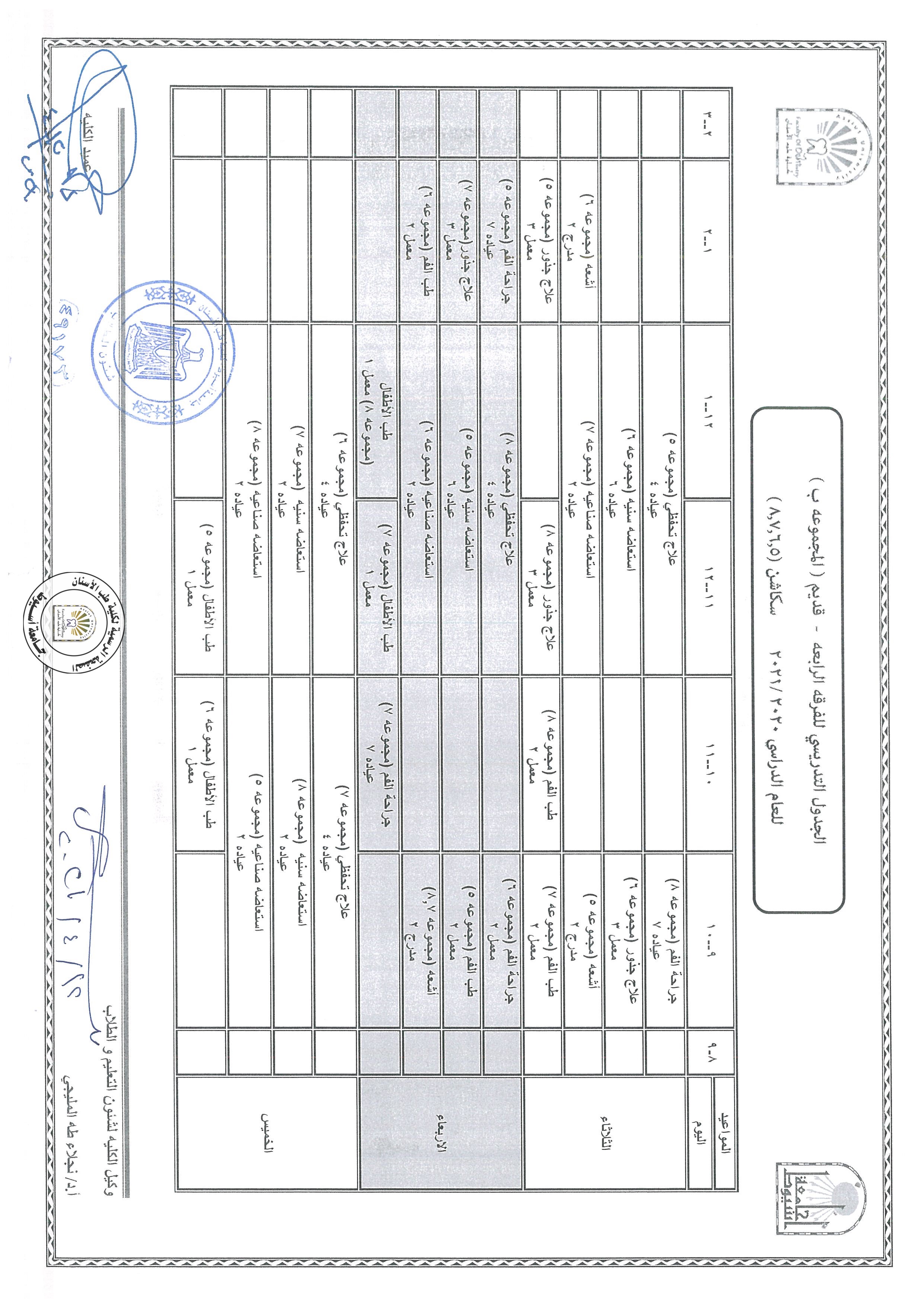 تعديل ...الجدول التدريسي للفرقة الثانية للعام الدراسي 2020/2021،طبقا لمواعيد شهر رمضان المبارك و يبدأ العمل به اعتبارا من يوم الثلاثاء 4/13 .
