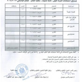 Exams Timetable for first year