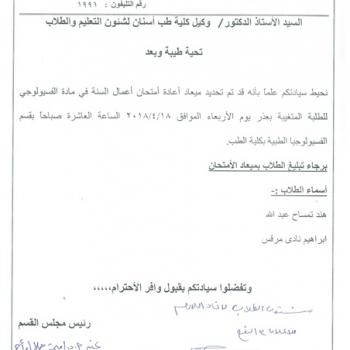Announcement for fourth year students