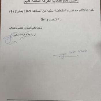 اعلان هام لطلاب الفرقة الثالثة قديم