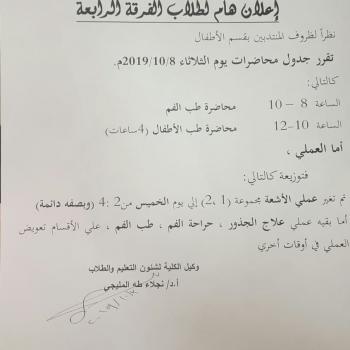 اعلان هام لطلاب الفرقة الرابعة اسنان
