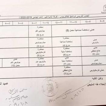 الجدول التدريسي لبرنامج البكالوريوس - الفرقة الثانية قديم ( العام الجامعي 2019/2020)