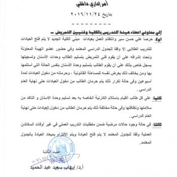 اعلان هام لجميع طلاب الكلية
