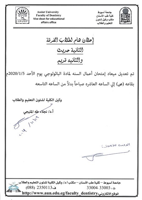 إعلان هام لطلاب الفرقة الثانيه ( حديث - قديم ) 29 ديسمبر 2019 إعلان هام لطلاب الفرقة الثانيه ( حديث - قديم )