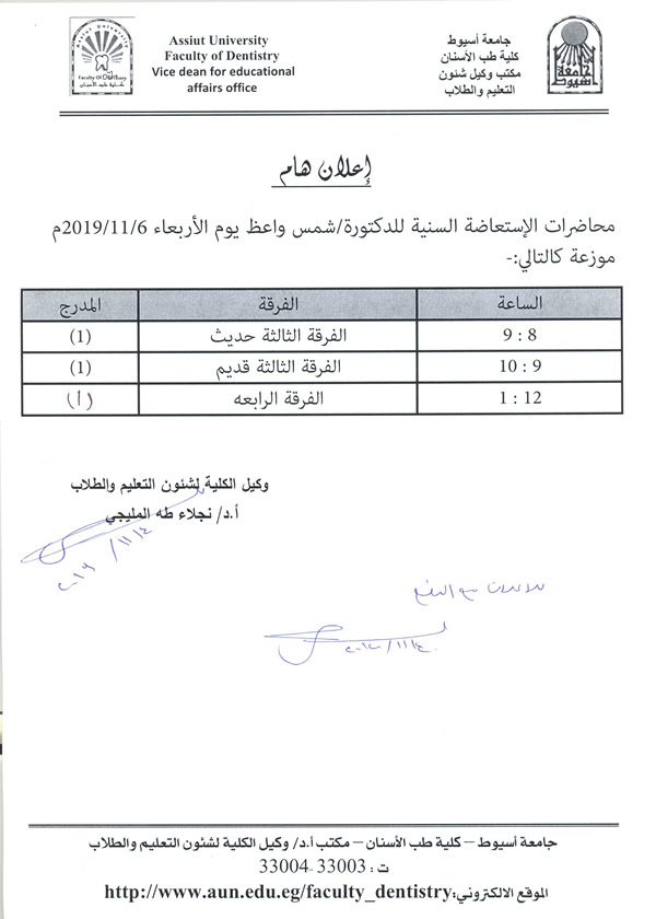 إعلان هام مواعيد محاضرات الإستعاضة السنية . 4 نوفمبر 2019 إعلان هام مواعيد محاضرات الإستعاضة السنية .