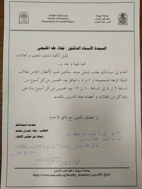 تبديل موعد سكشن طب الأطفال الخاص بطلاب الفرقة الرابعة للمجموعة (7،8). 22 أكتوبر 2019 تبديل موعد سكشن طب الأطفال الخاص بطلاب الفرقة الرابعة للمجموعة (7،8).