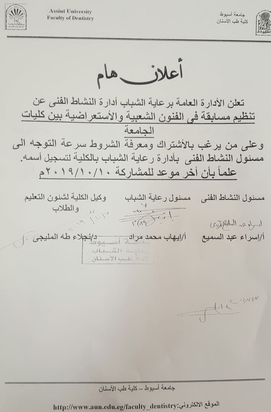 إعلان عن تنظيم مسابقة في الفنون الشعبية و الأستعراضية بين كليات الجامعة