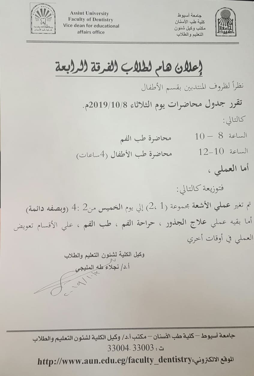 اعلان لطلاب الفرقة الخامسة .