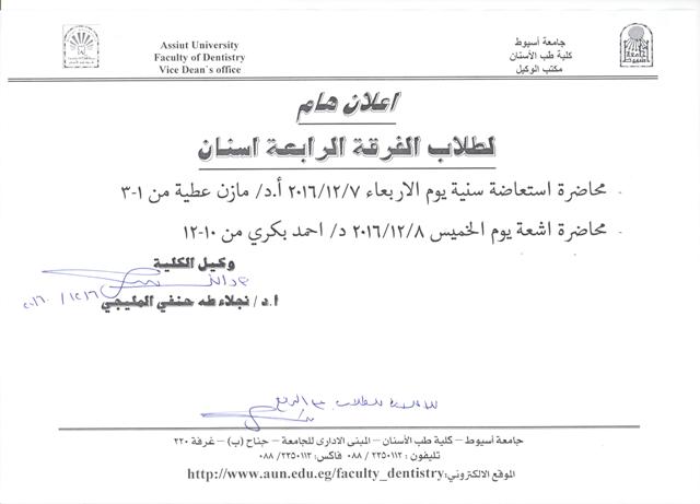 اعلان هام لطلاب الفرقة الرابعة