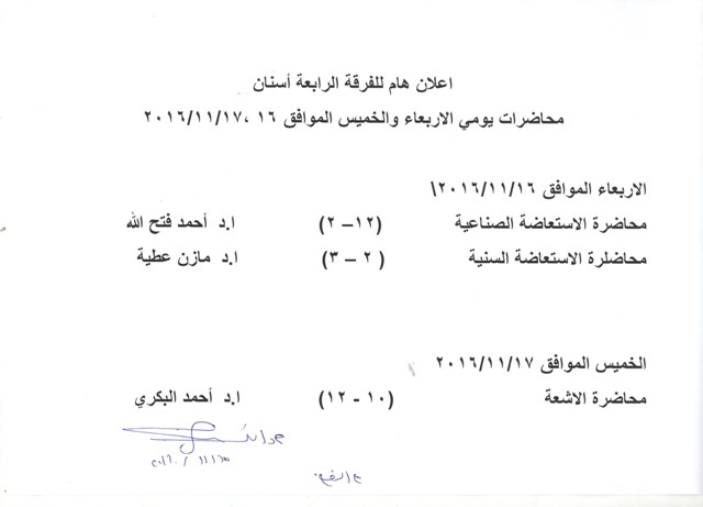 اعلان هام لطلاب الفرقة الرابعة