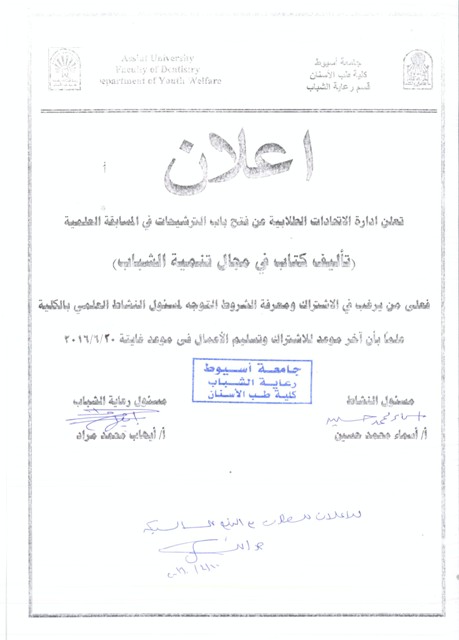 اعلان عن فتح باب الترشيحات فى المسابقة العلمية 10 أبريل 2016 اعلان عن فتح باب الترشيحات فى المسابقة العلمية