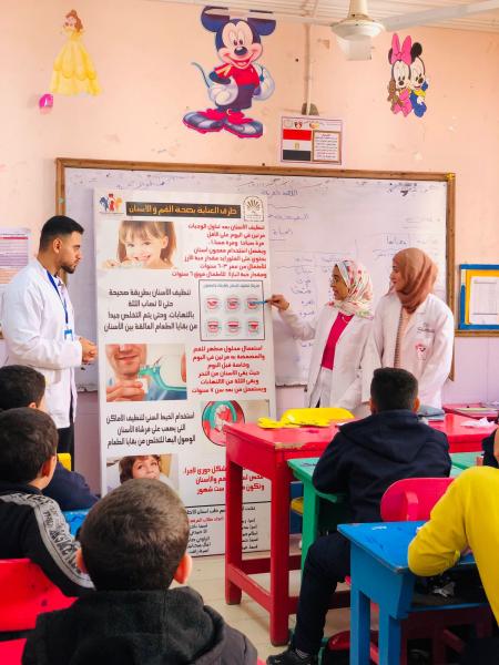 حيث قام طلاب الأسرة بتوعية طلاب المرحلة الأبتدائية وتعريفهم الطرق الصحيحة للعناية بالفم والأسنان وتوزيع بعض الهدايا العينية .