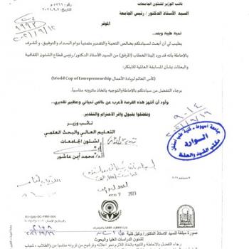 The Deputy Minister of Higher Education and Scientific Research for Universities Affairs announces the active participation in the Global Innovation Competition: (World Cup for Entrepreneurship).