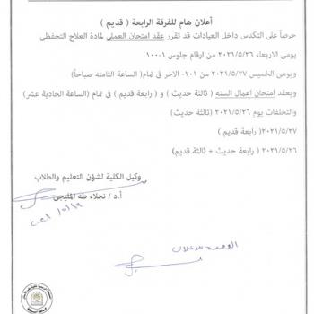 Important announcement, for the Fourth year (old) students, determining the Practical exam for Operative Dentistry.