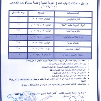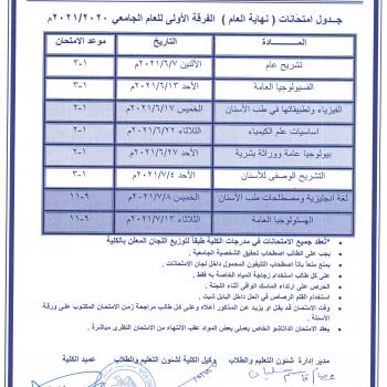 Schedule of exams (end of the year) for the first year for the academic year 2020/2021.
