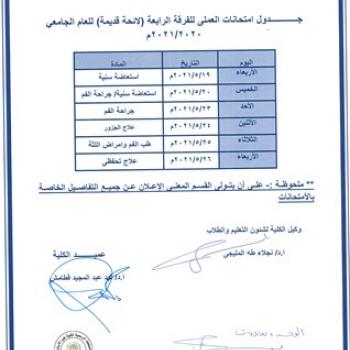 Schedule of practical examinations for the Fourth year (old) for the year 2020/2021