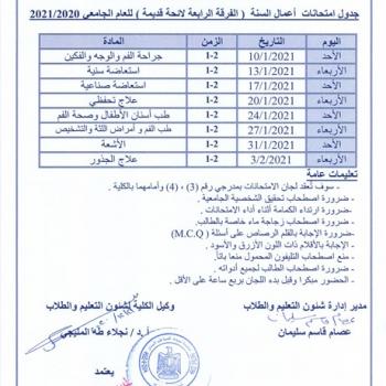 Schedule of midterm exams for the (Fourth year - Old ) for the academic year 2020/2021.