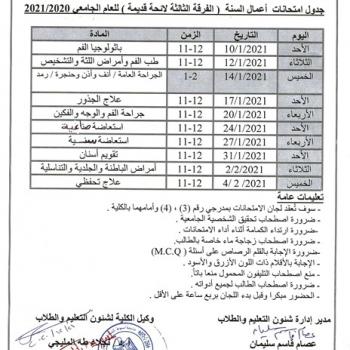 Schedule of midterm exams for the (Third year - Old ) for the academic year 2020/2021.