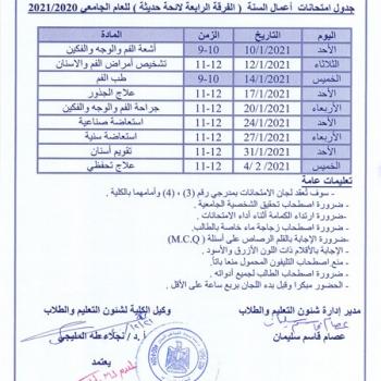 Schedule of midterm exams for the (Fourth year - New ) for the academic year 2020/2021.