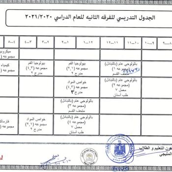 Teaching schedule for the second year for the academic year 2020-2021.