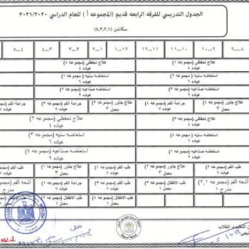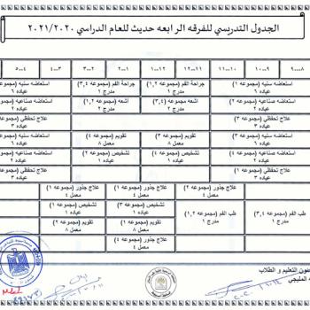 The teaching schedule for the fourth year, group (a) and (b) for the academic year 2020/2021.